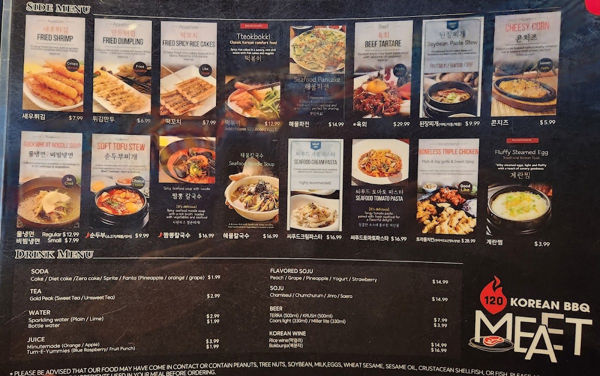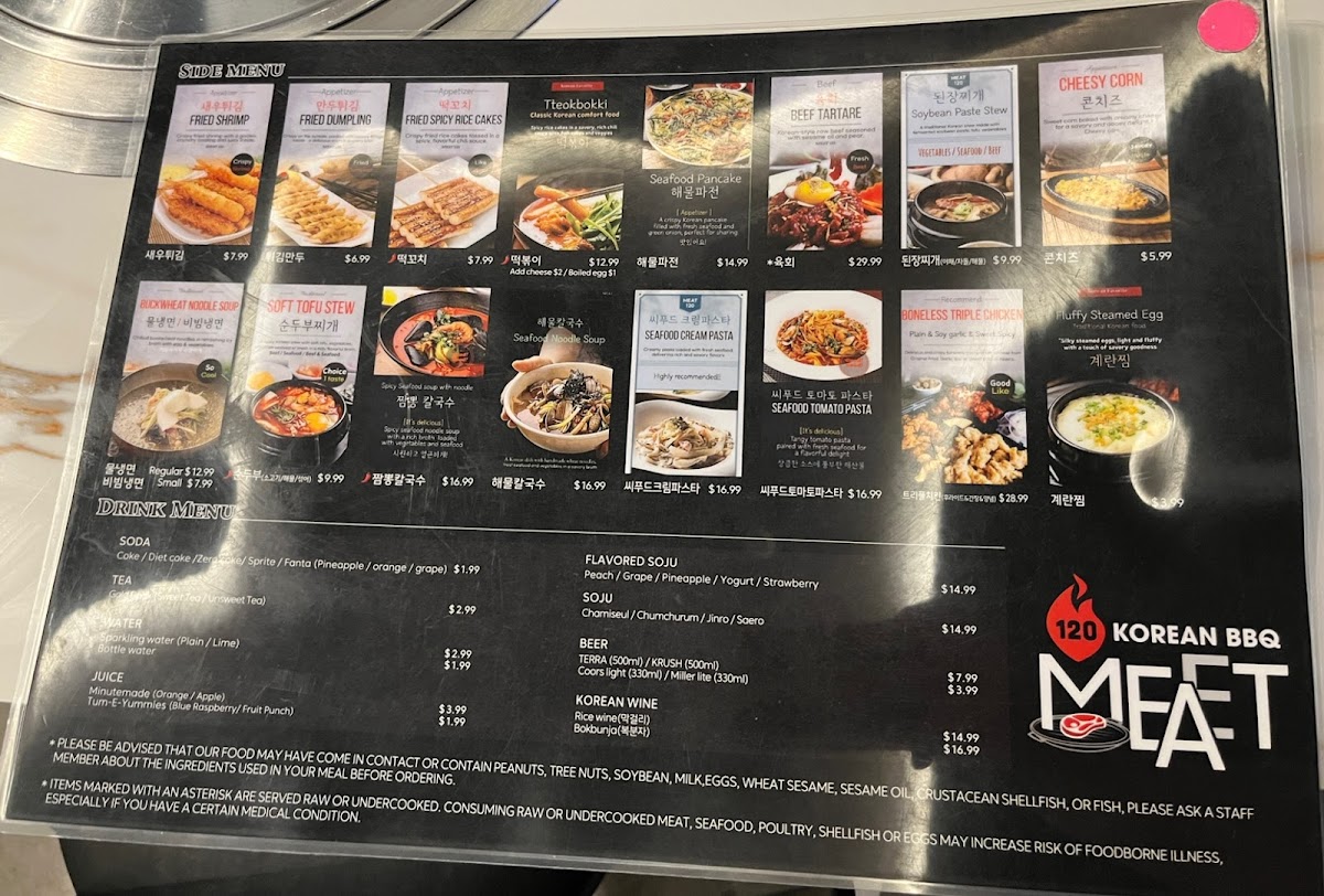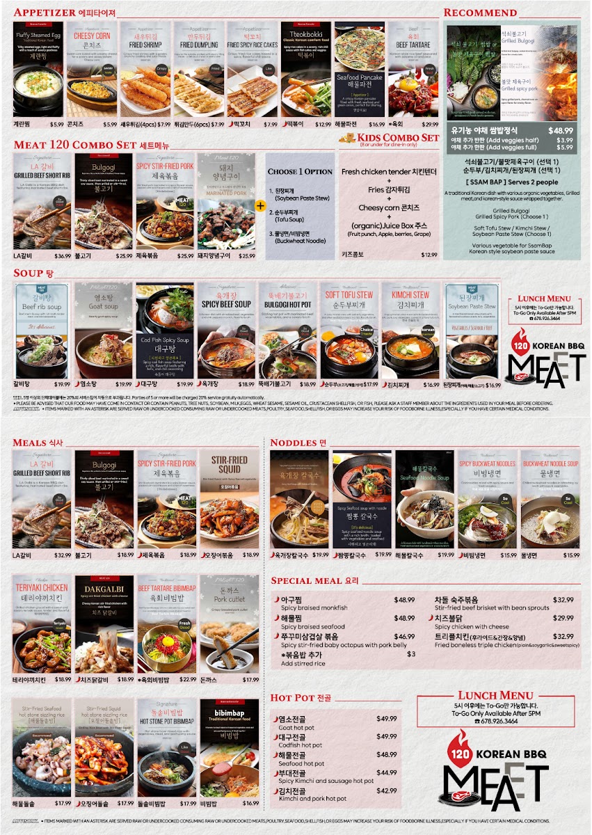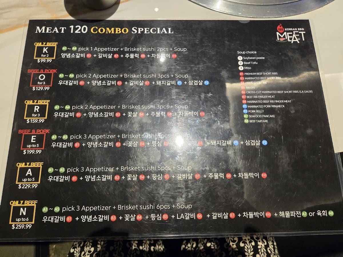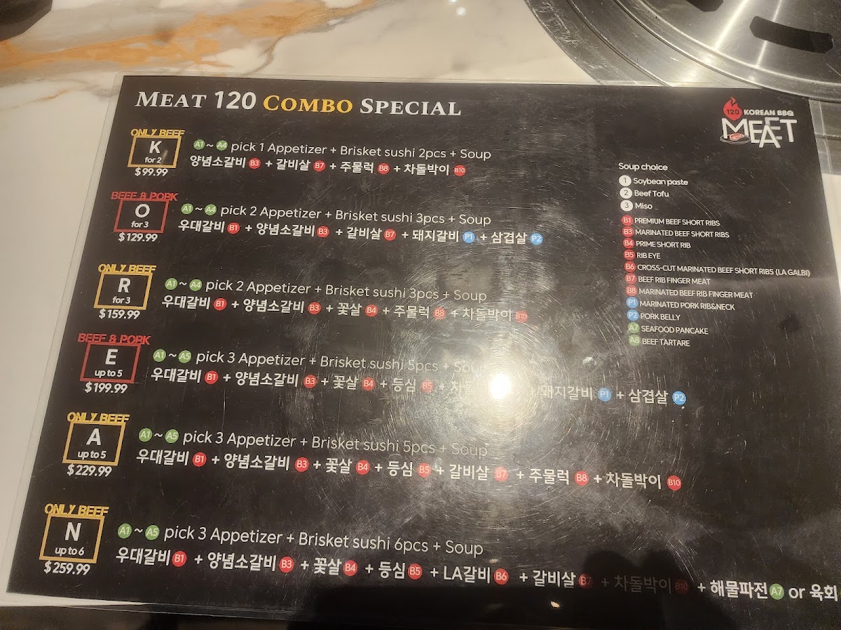 The menu at Meat 120 Korean BBQ offers a straightforward yet satisfying Korean barbecue experience, perfect for those looking to enjoy a relaxed meal with friends or family. Here, you can explore a variety of meats for grilling, complemented by thoughtfully prepared side dishes that add both flavor and balance to each bite.